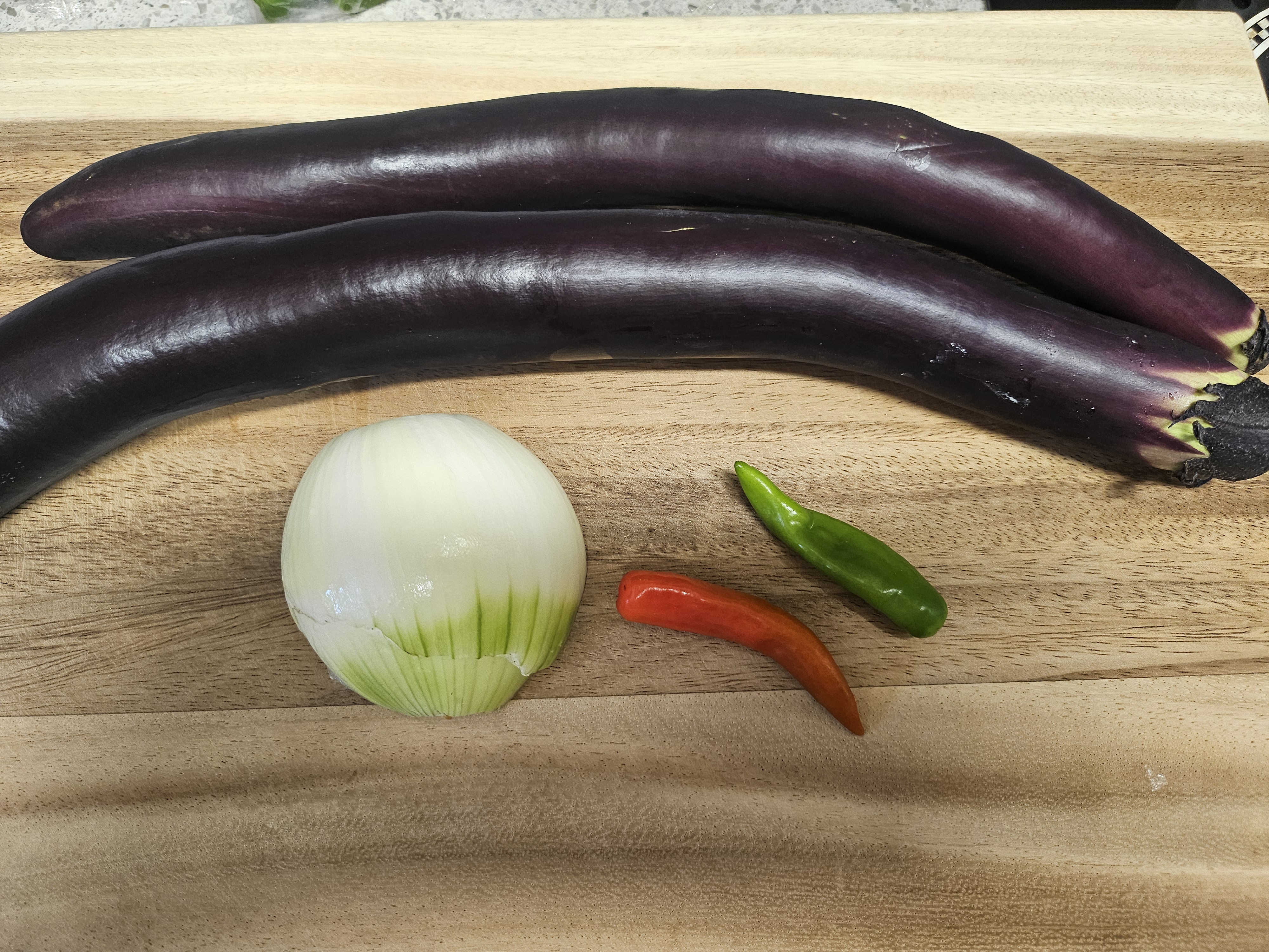 • 가지는 세로로 반 갈라 어슷하게 썰어요.