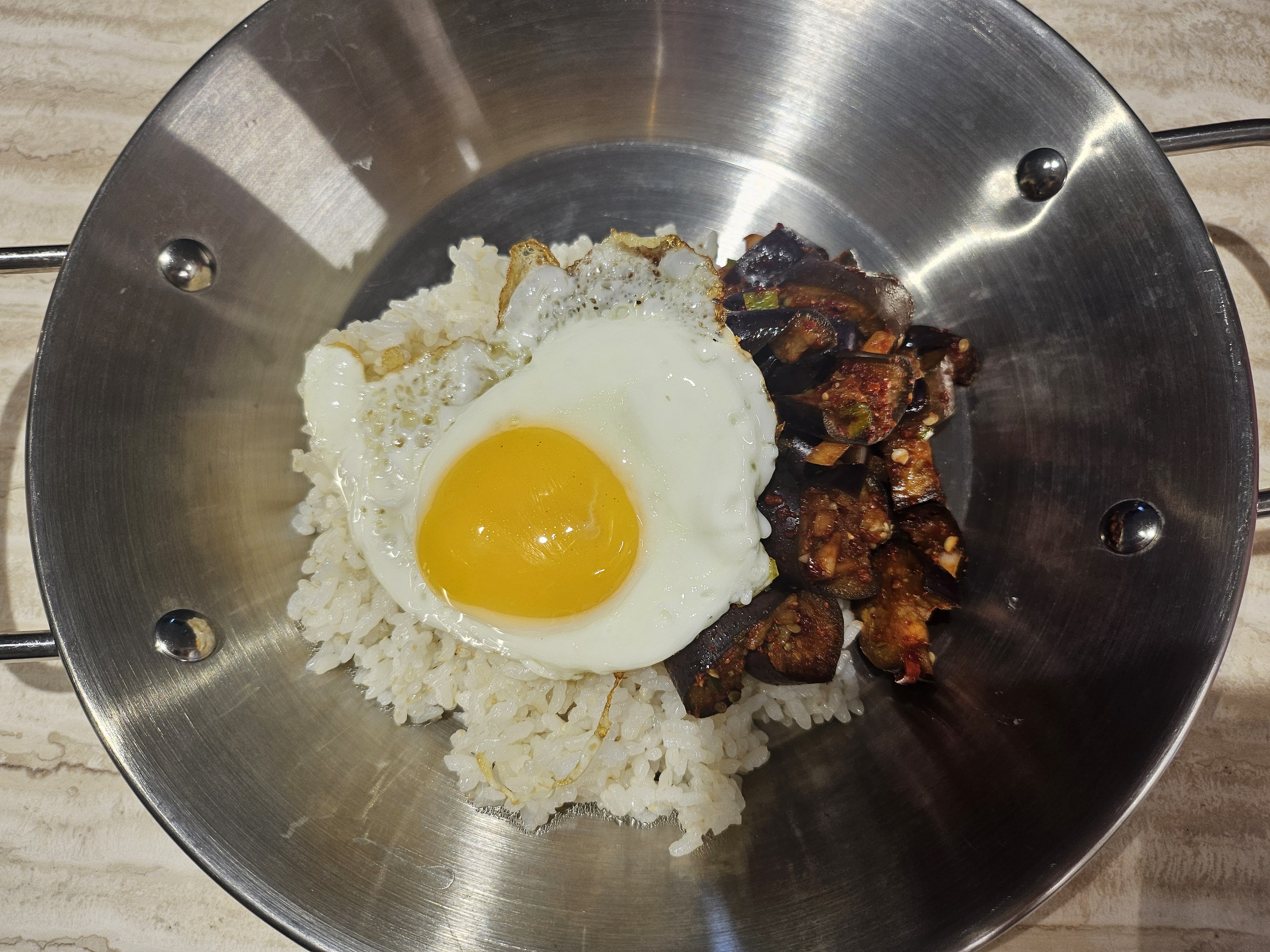 • 따뜻한 밥 위에 가지볶음을 듬뿍 올리고