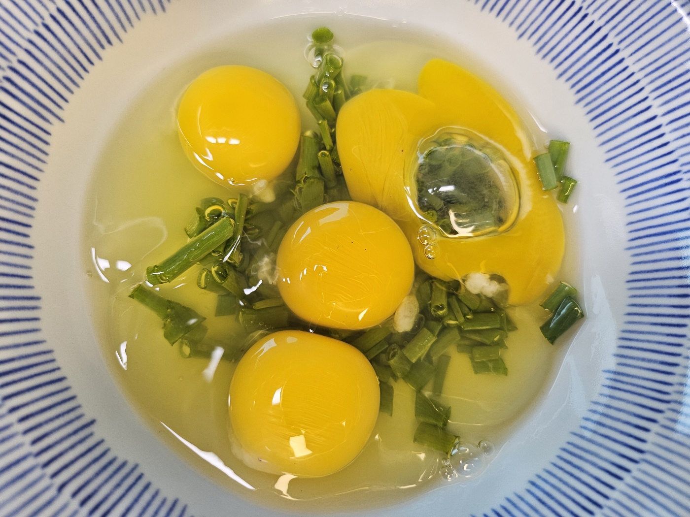 계란 4개를 풀고 물 240ml, 소금, 다시다, 후추를 넣어 잘 섞어주세요.