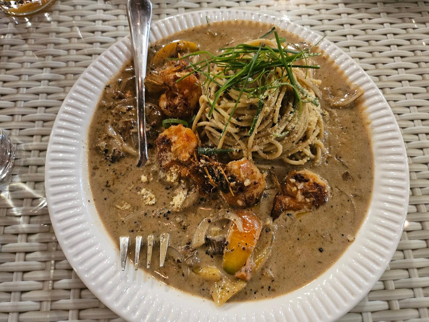 블랙페퍼 향이 진하게 느껴지면서도 고소하고 부드러운 크림소스와 너무 잘 어울렸어요.