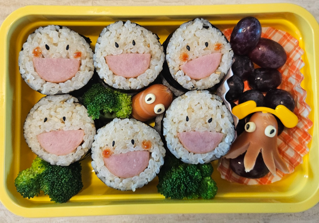 비엔나 소시지로 만든 문어와 애벌레 캐릭터
