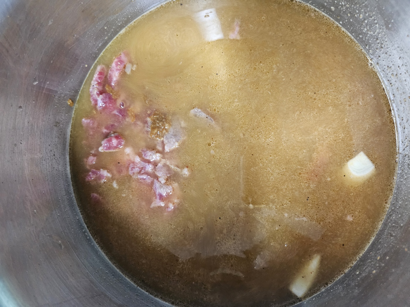 • 냄비에 참기름을 두르고 다진 마늘과 소고기를 볶다가,