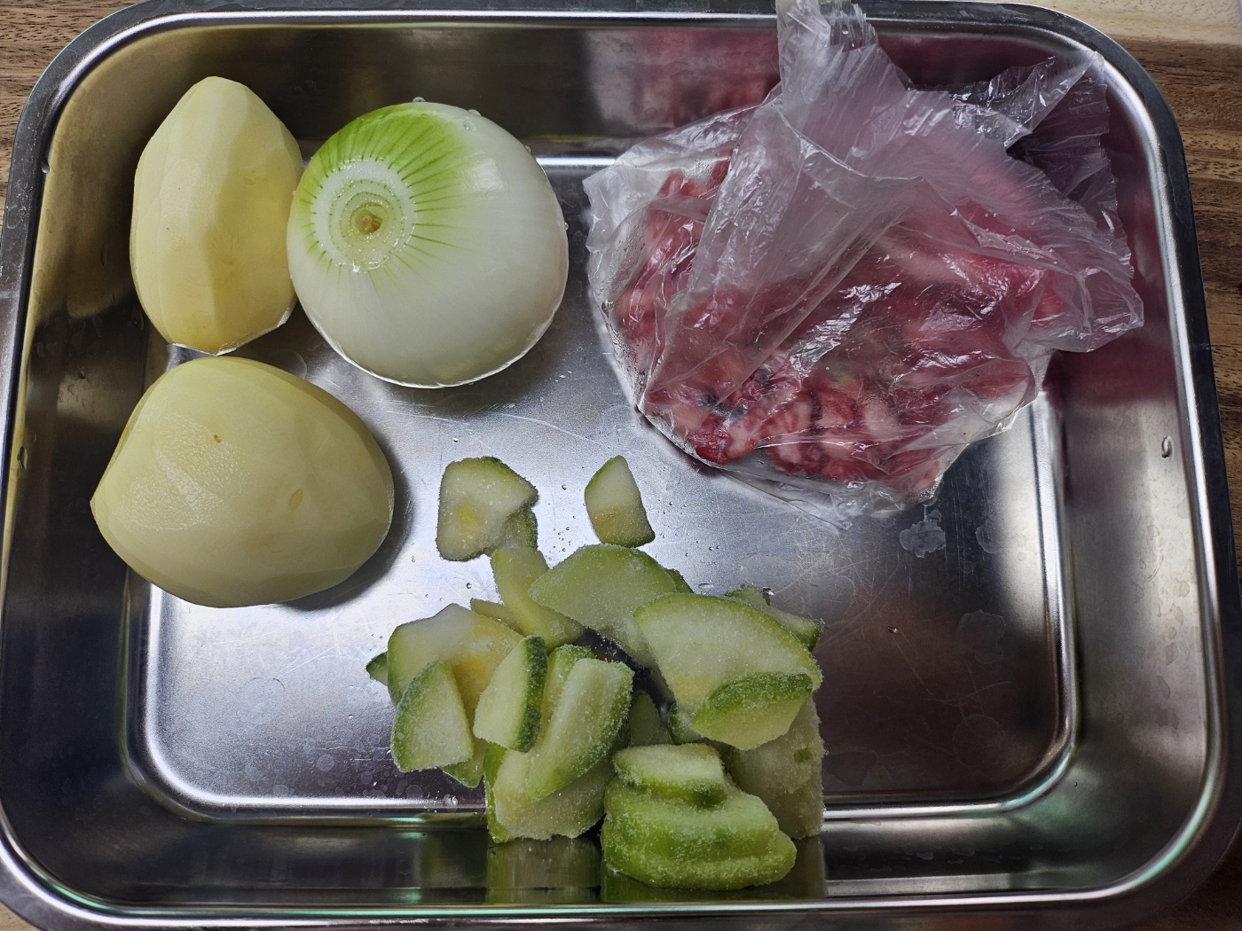 • 감자, 양파, 애호박은 잘게 깍둑 썰어요.