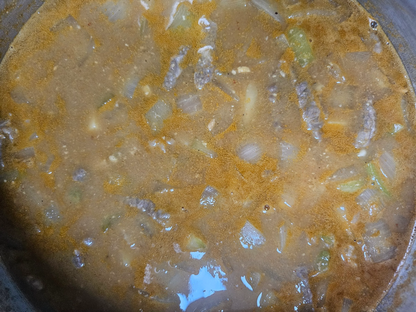 • 멸치육수나 물 1컵을 붓고, 약불에서 바글바글 졸여요.