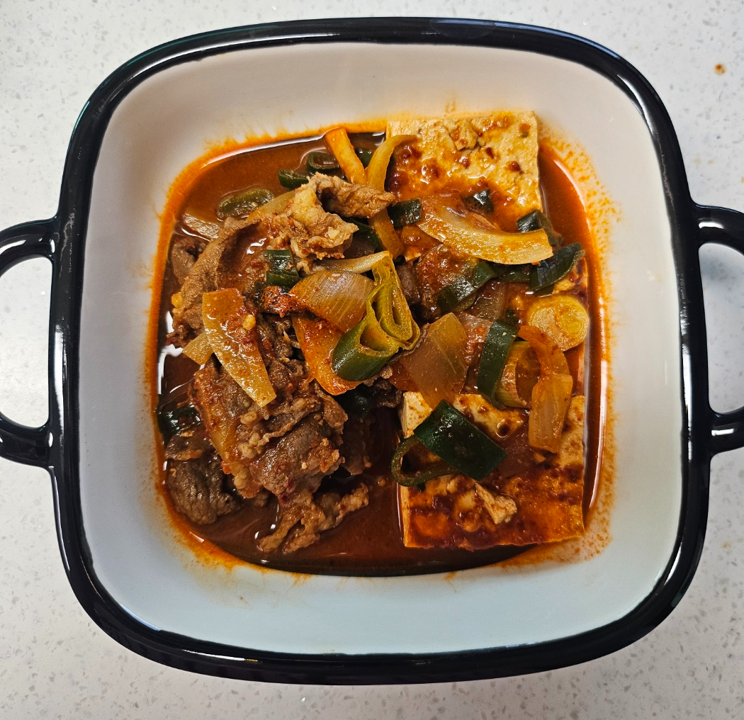 - 국물이 자작해지고 두부에 양념이 스며들면 완성!