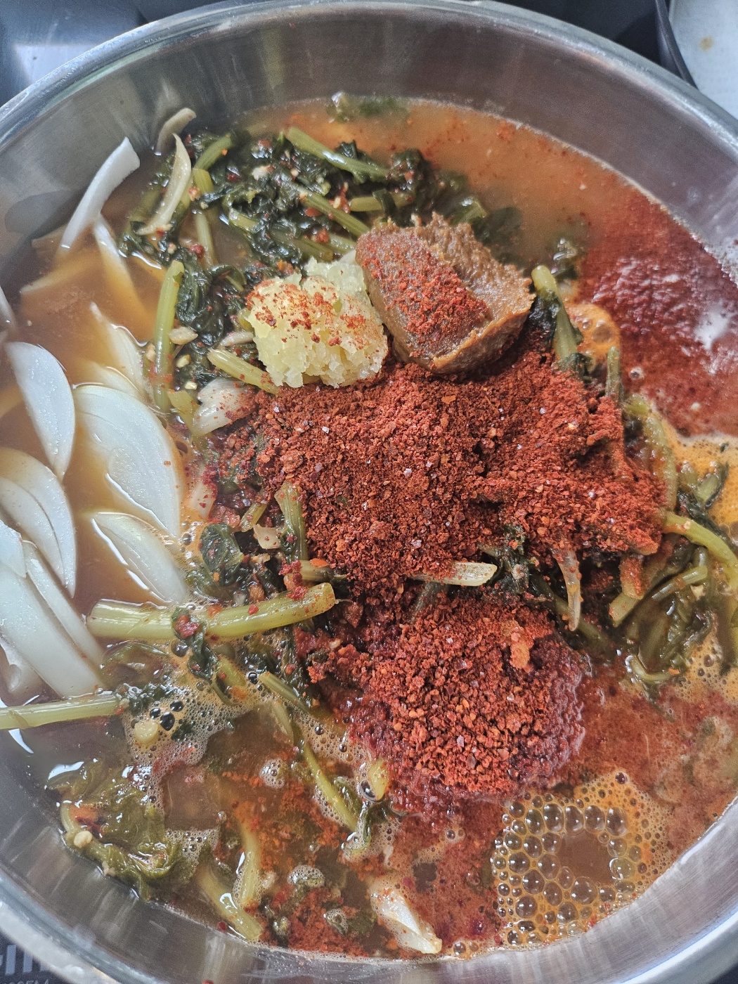 잘 익은 열무김치에 고등어를 넣고 자작하게 조려주면,