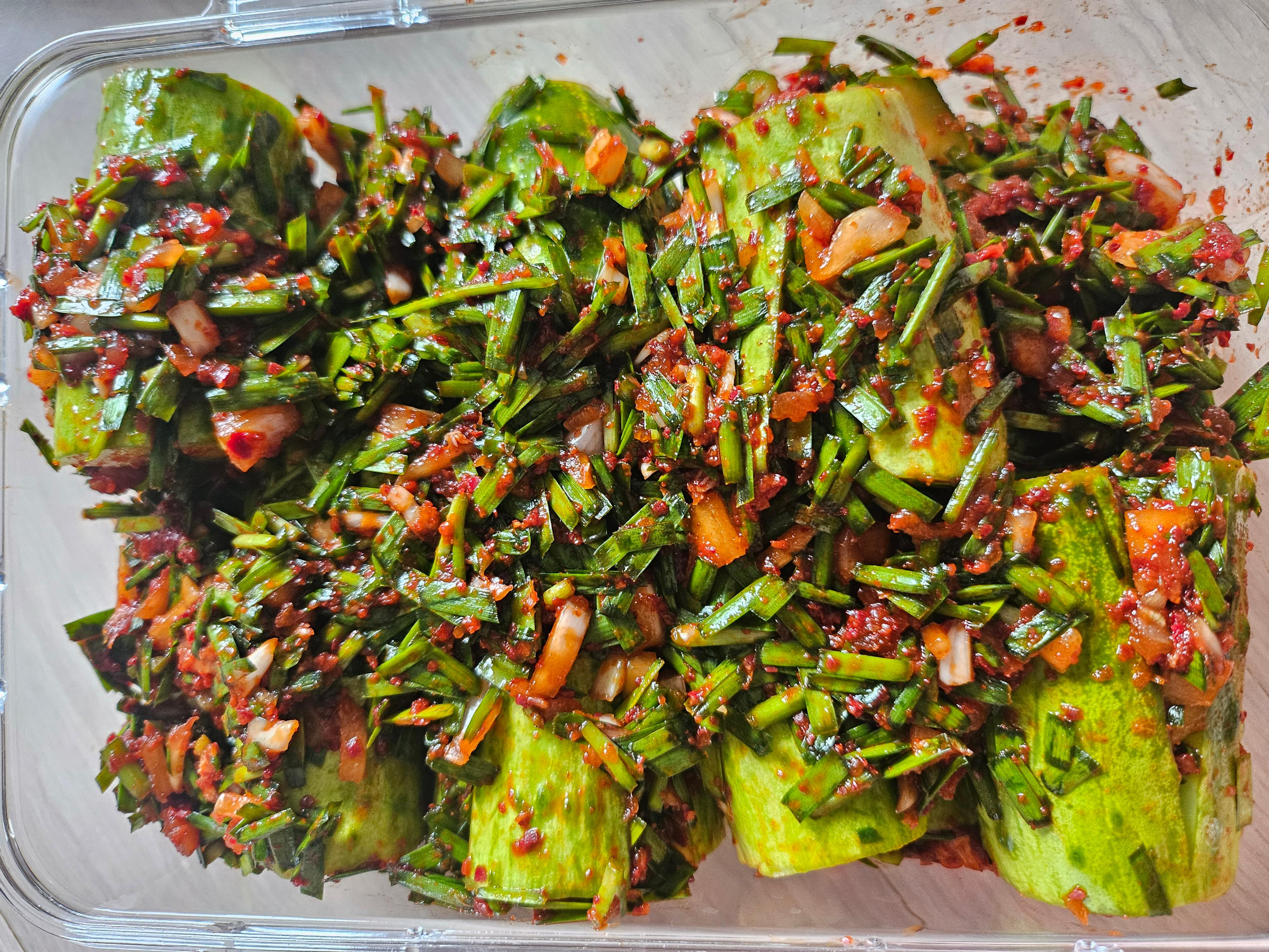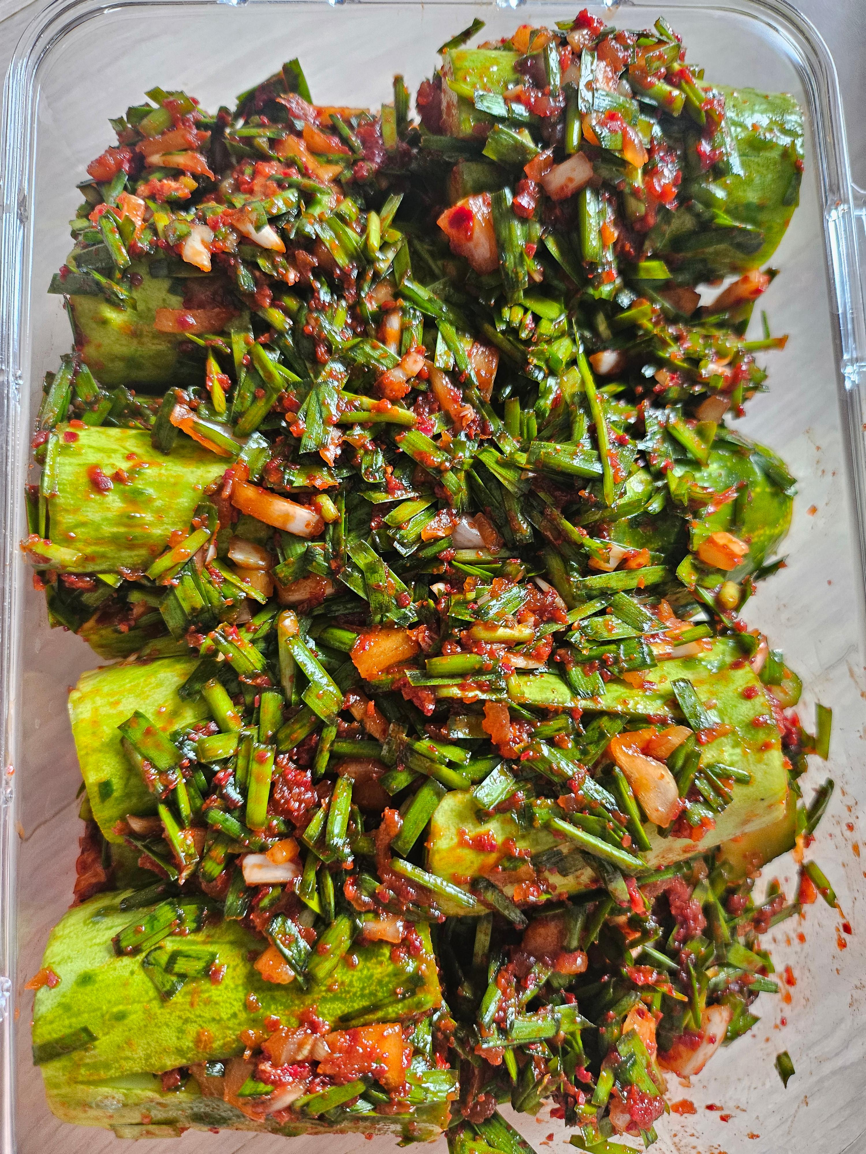 아삭하게 절인 오이에 매콤 달콤한 양념을 꽉 채워
